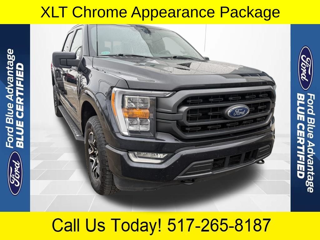 Ford Blue Certified Certified, 4WD, 2-Bar Style Grille w/Chrome 2 Minor Bars, Bright Polished Step Bars, Chrome Door & Tailgate Handles w/Body-Color Bezel, Chrome Single-Tip Exhaust, Wheels: 18" Chrome-Like PVD, XLT Chrome Appearance Package, 10-Way Power Driver & Passenger Seats, 4-Wheel Disc Brakes, 6 Speakers, 8" Productivity Screen in Instrument Cluster, ABS brakes, Accent-Color Step Bars, Air Conditioning, Alloy wheels, AM/FM radio, Auto High-beam Headlights, Auto Start-Stop Removal, Auto-Dimming Rear-View Mirror, Black 2-Bar Style Grille w/Black Surround/Accents, Body-Color Door & Tailgate Handles, Body-Color Front & Rear Bumpers, Box Side Decals, Brake assist, Bumpers: chrome, Class IV Trailer Hitch Receiver, Cloth 40/20/40 Front Seat, Compass, Connected Navigation & SiriusXM w/360L Removal, Delay-off headlights, Driver door bin, Driver vanity mirror, Dual front impact airbags, Dual front side impact airbags, Dual Zone Electronic Automatic Temperature Control, Electronic Stability Control, Emergency communication system: SYNC 4 911 Assist, Equipment Group 302A High, Exterior Parking Camera Rear, Front anti-roll bar, Front Center Armrest w/Storage, Front fog lights, Front reading lights, Front wheel independent suspension, Fully automatic headlights, GVWR: 6,470 lbs Payload Package, Heated door mirrors, Heated Front Seats, Illuminated entry, Integrated Trailer Brake Controller, Intelligent Access w/Push Button Start, Interior Work Surface, Leather-Wrapped Steering Wheel, LED Reflector Headlamps, LED Sideview Mirror Spotlights, Low tire pressure warning, Occupant sensing airbag, Onboard 400W Outlet, Outside temperature display, Overhead airbag, Overhead console, Panic alarm, Passenger door bin, Passenger vanity mirror, Power door mirrors, Power Glass Heated Sideview Mirrors, Power steering, Power windows, Power-Sliding Rear Window, Pro Trailer Backup Assist, Radio data system, Radio: AM/FM SiriusXM w/360L, Radio: AM/FM Stereo w/6 Speakers, Rear reading lights, Rear step bumper, Rear Under-Seat Storage, Rear window defroster, Remote keyless entry, Remote Start System, SecuriCode Drivers Side Keyless-Entry Keypad, Security system, Speed control, Speed-sensing steering, Split folding rear seat, Steering wheel mounted audio controls, SYNC 4, SYNC 4 w/Enhanced Voice Recognition, Tachometer, Telescoping steering wheel, Tilt steering wheel, Traction control, Trailer Tow Package, Tray Style Floor Liner, Trip computer, Unique Sport Cloth 40/Console/40 Front-Seats, Variably intermittent wipers, Voltmeter, Wheels: 17" Silver Painted Aluminum, Wheels: 18" 6-Spoke Machined Aluminum, XLT Sport Appearance Package, Zone Lighting, 4WD, 2-Bar Style Grille w/Chrome 2 Minor Bars, Bright Polished Step Bars, Chrome Door & Tailgate Handles w/Body-Color Bezel, Chrome Single-Tip Exhaust, Wheels: 18" Chrome-Like PVD, XLT Chrome Appearance Package.