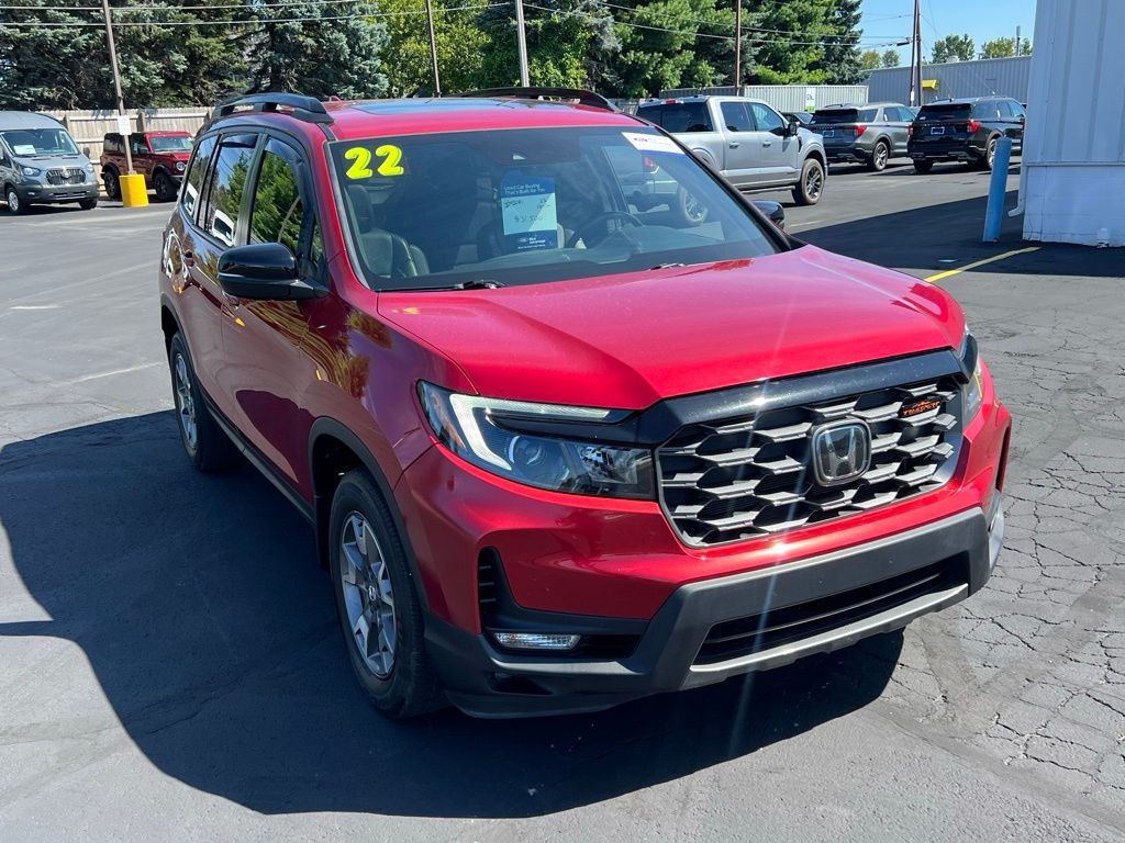 Certified. Radiant Red Metallic II 2022 Honda Passport TrailSport AWD 9-Speed Automatic 3.5L V6 24V SOHC i-VTEC