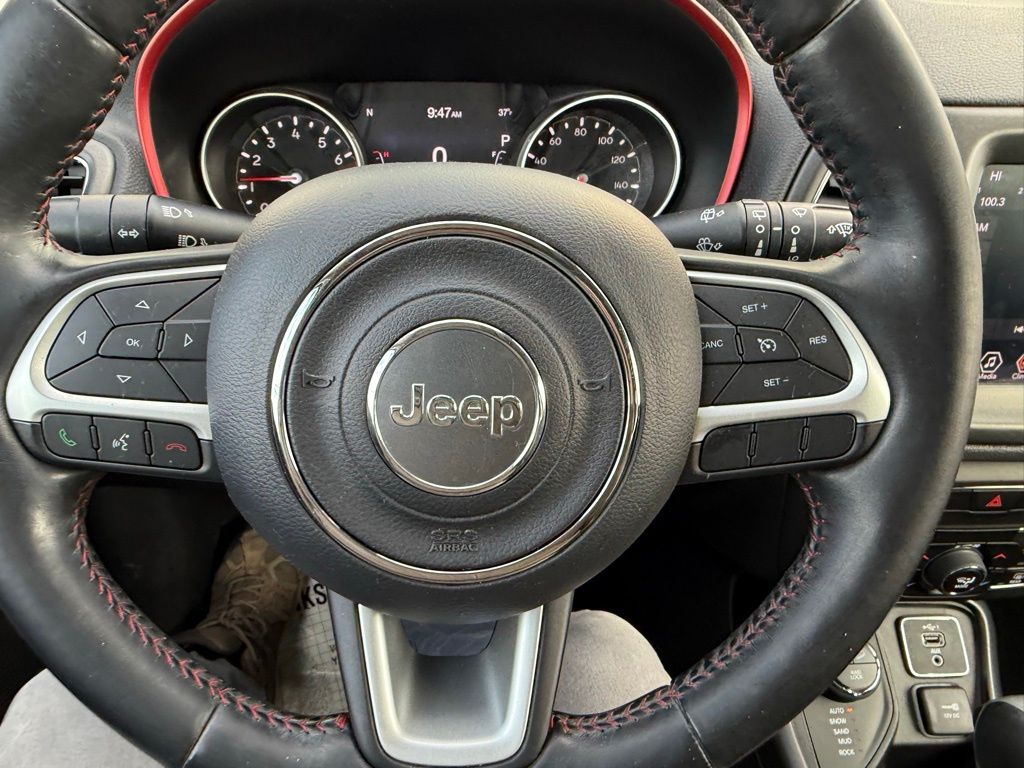 Certified Certified, 4WD, 17" x 6.5" Aluminum Wheels, 4-Wheel Disc Brakes, 4.334 Axle Ratio, 6 Speakers, 8.4" Touch Screen Display, ABS brakes, Air Conditioning, Air Vents Center Console/Rear Seats, Alloy wheels, AM/FM radio: SiriusXM, Anti-whiplash front head restraints, Apple CarPlay, Apple CarPlay/Android Auto, Automatic temperature control, Autostick Automatic Transmission, Bluetooth® Streaming Audio, Brake assist, Bumpers: body-color, Cold Weather Group, Compass, Delay-off headlights, Driver door bin, Driver vanity mirror, Dual front impact airbags, Dual front side impact airbags, Electronic Stability Control, Four wheel independent suspension, Front anti-roll bar, Front Bucket Seats, Front Center Armrest w/Storage, Front dual zone A/C, Front fog lights, Front License Plate Bracket, Front reading lights, Fully automatic headlights, Google Android Auto, GPS Antenna Input, Heated door mirrors, Heated Front Seats, Heated Steering Wheel, Illuminated entry, Knee airbag, Leather Shift Knob, Leather Wrapped Shift Knob, Low tire pressure warning, Media Hub (USB, AUX), Occupant sensing airbag, Outside temperature display, Overhead airbag, Overhead console, Panic alarm, ParkView Rear Back-Up Camera, Passenger door bin, Passenger vanity mirror, Power door mirrors, Power steering, Power windows, Premium Cloth/Leather Trim Bucket Seats, Quick Order Package 2GE, Radio: Uconnect 4 w/8.4" Display, Rear anti-roll bar, Rear seat center armrest, Rear window defroster, Rear window wiper, Remote keyless entry, Remote Start System, Roof rack: rails only, Speed control, Split folding rear seat, Spoiler, Steering wheel mounted audio controls, Tachometer, Telescoping steering wheel, Tilt steering wheel, Traction control, Trip computer, Turn signal indicator mirrors, USB Host Flip, Variably intermittent wipers, Windshield Wiper De-Icer, Heated Seats, Heat seats COOL BLUE TrailHawk!, 4WD.